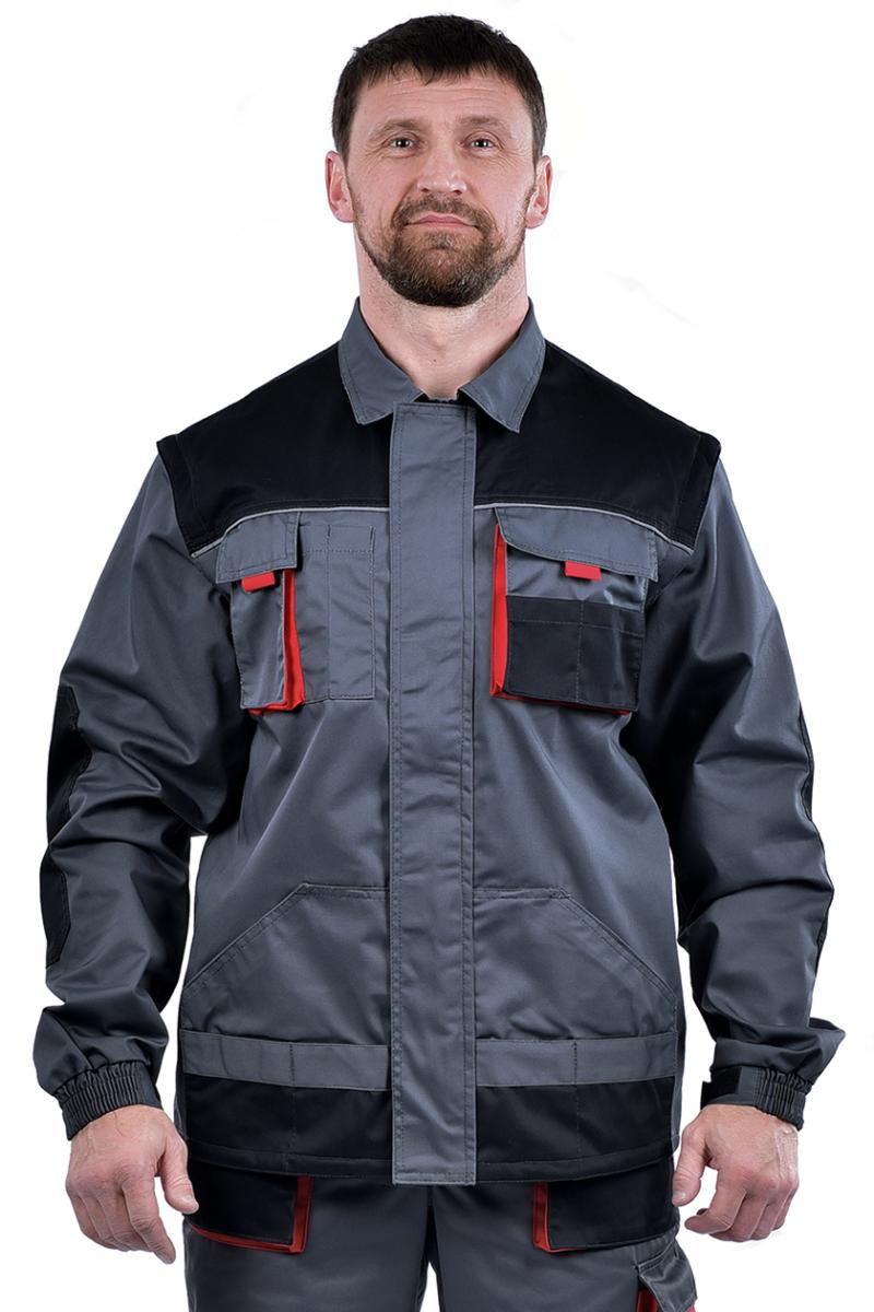 Куртка прямого кроя, центральная бортовая застежка на тесьму «молния» и ветрозащитной планкой, отложной воротник. Два нагрудных накладных кармана, правый карман двойной. По шву притачивания кокетки расположен СВ кант.